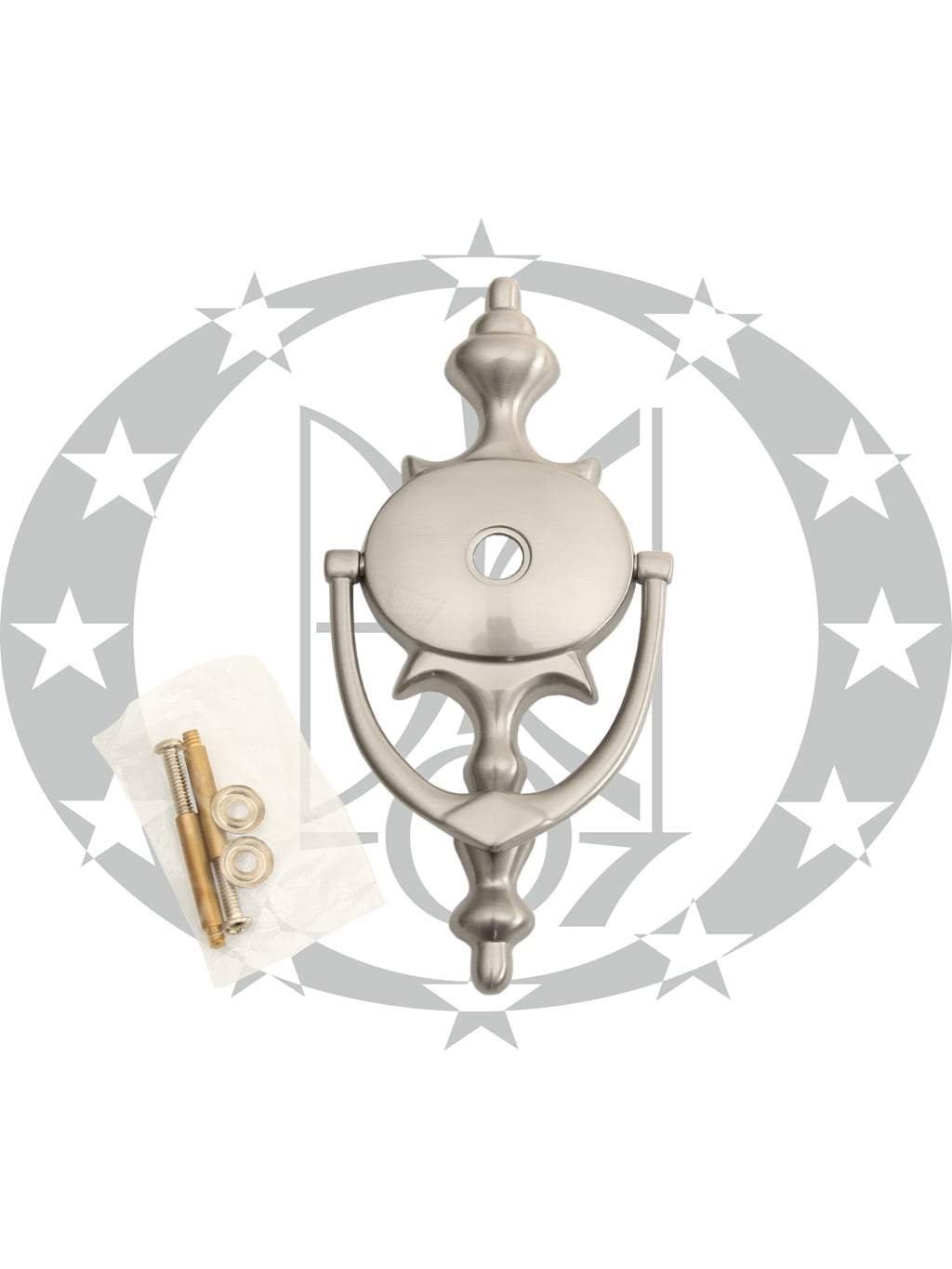 Дверний молоток АМФОРА під вічко d12 нікель сатинований – дверна стукалка польського виробництва, призначена для сповіщення господаря будинку про прихід гостей, а також виконує декоративну функцію. Дверна стукалка підкреслить та облагородить дизайн вхідних дверей вашого дому. В конструкції передбачено отвір для монтажу дверного вічка.