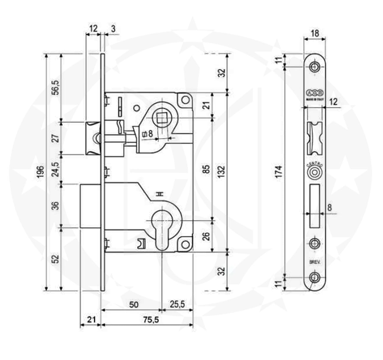 Замок AGB Centro 85/50 PZ антична бронза (B01025.50.22) – врізний замок – механізм відомого італійського виробника AGB.