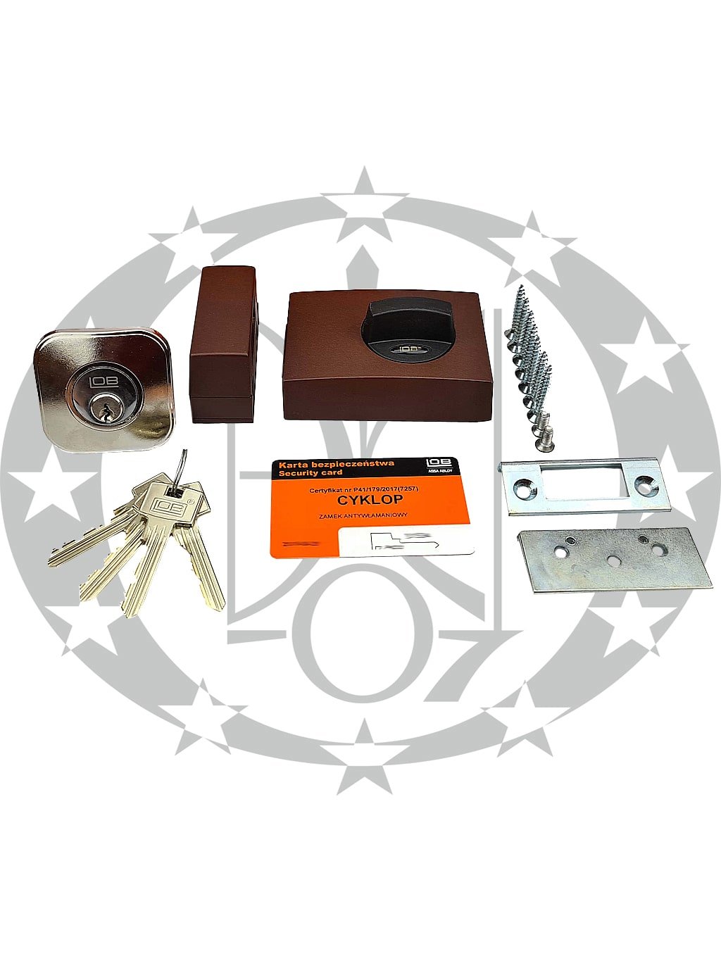 Замок LOB TG610 CYKLOP XT коричневий – накладний додатковий замок польського виробника LOB, який входить до групи AssaAbloy. Дана модель призначена для монтажу на вхідні двері із лівою та правою стороною відкривання з товщиною дверного полотна від 38 до 65 мм. Характеризується, перш за все, надзвичайно міцною конструкцією та простотою монтажу. Серцевина замкацього замка захищена від спроб висвердлювання. Корпус та зовнішні деталі вкриті порошковою фарбою. В комплекті йдуть дистанційні проставки, які дозволяють правильно змонтувати механізм на ваші двері.