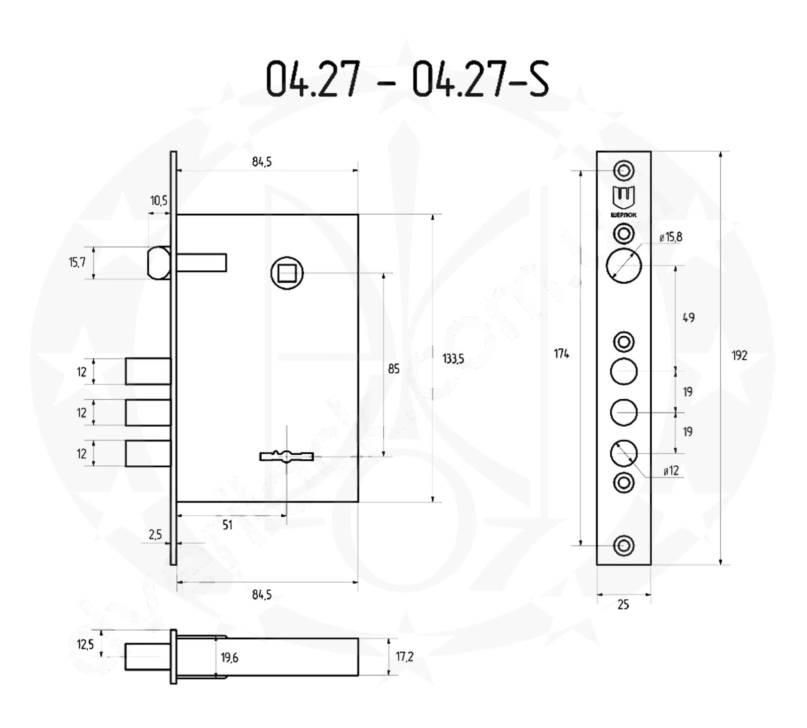 Замок врізний ШЕРЛОК 04.27-S 85/53 цинк 5 ключів є повним аналогом та замінником ЕЛЬБОР 1.04.27.