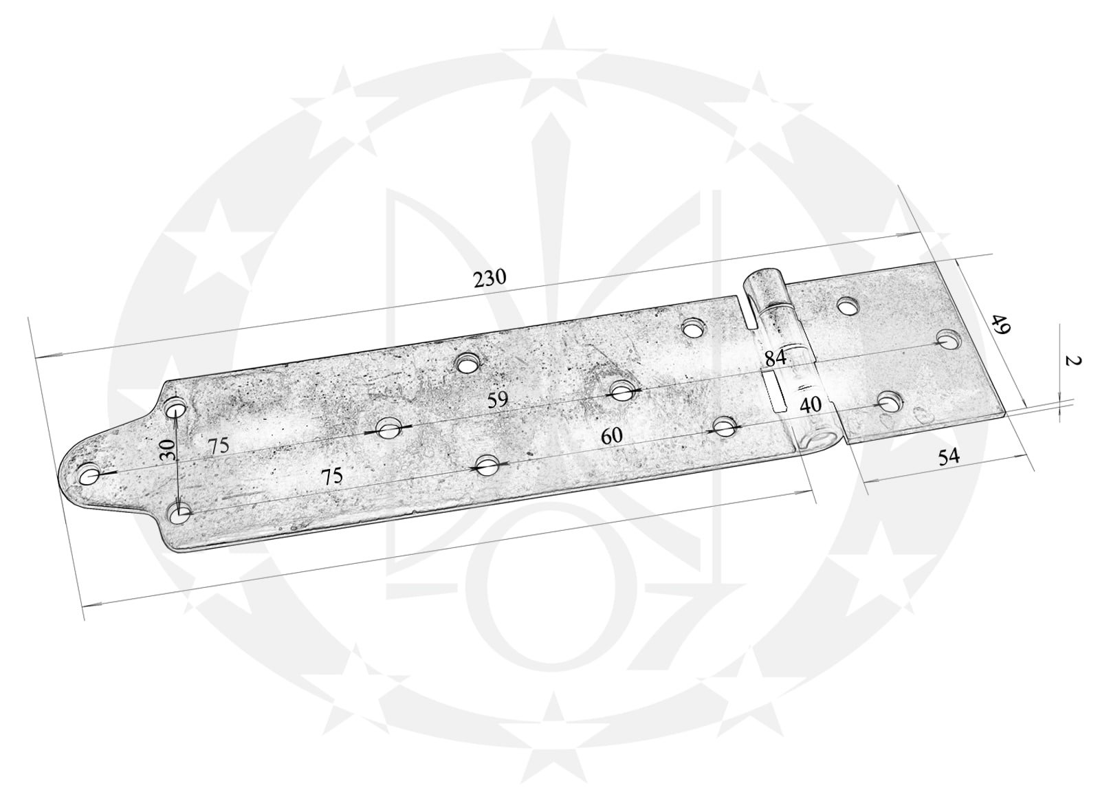 ccЗавіс ЦеКо з фігурними крилами 235 х 50 цинкований – накладний, металевий завіс власного виробництва. Завіс призначений для використання в легких дерев’яних дверях та різного роду меблях та виробах господарського призначення (скринях, ящиках, дверцятах, люках та ін. )