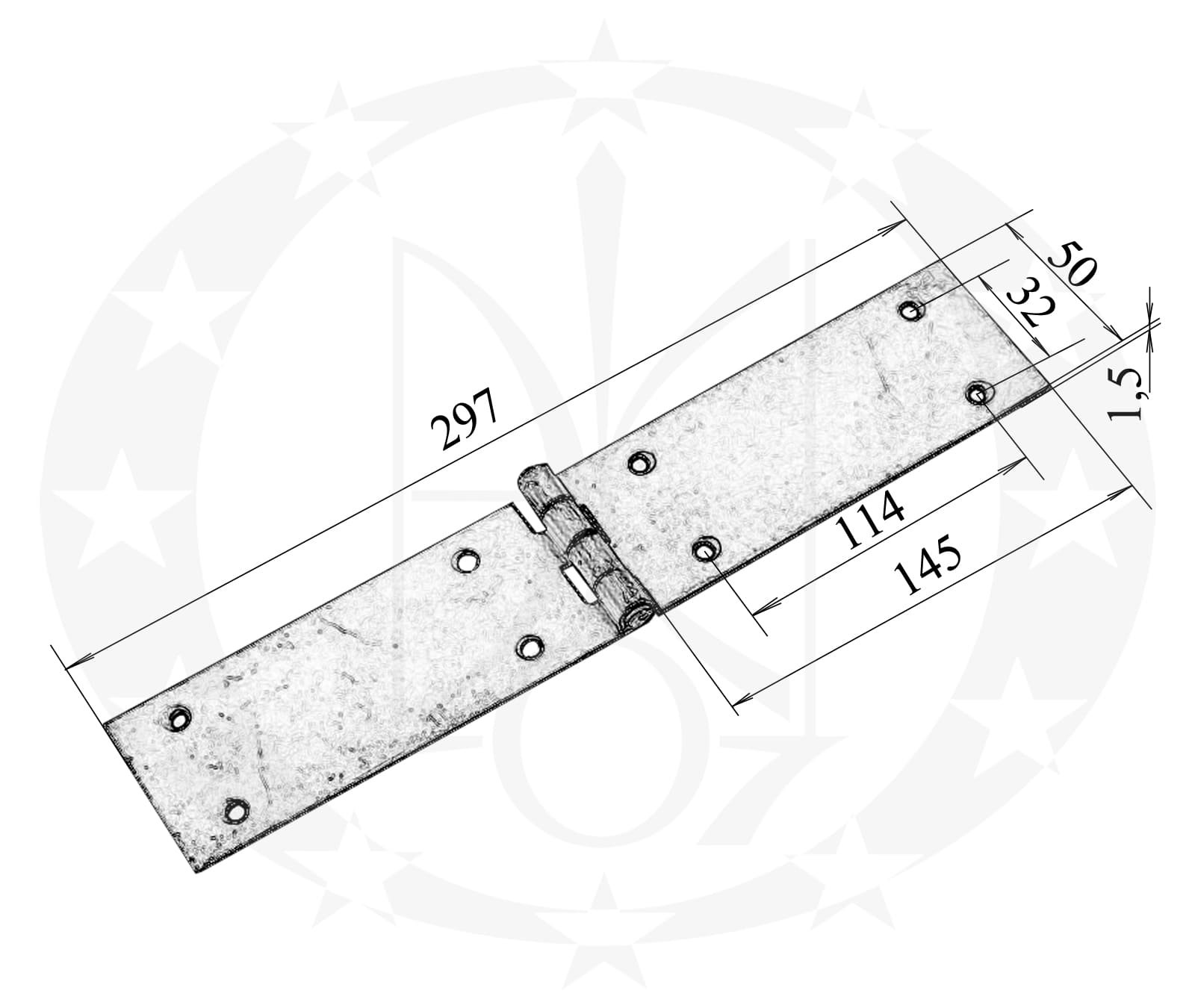 Завіс 300 х 50 цинкований – накладний, металевий завіс польського виробництва. Завіс призначений для використання в легких дерев’яних дверях та різного роду меблях та виробах господарського призначення (скринях, ящиках, дверцятах, люках та ін. )