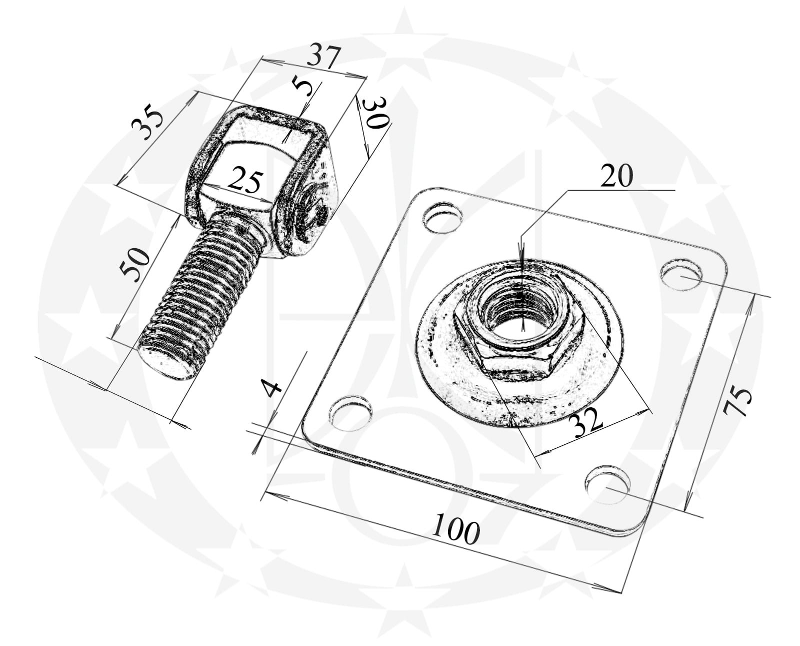 Завіс брамовий M20 вкручуваний цинк білий регульований виготовлений із сталі та вкритий якісним цинковим покриттям.