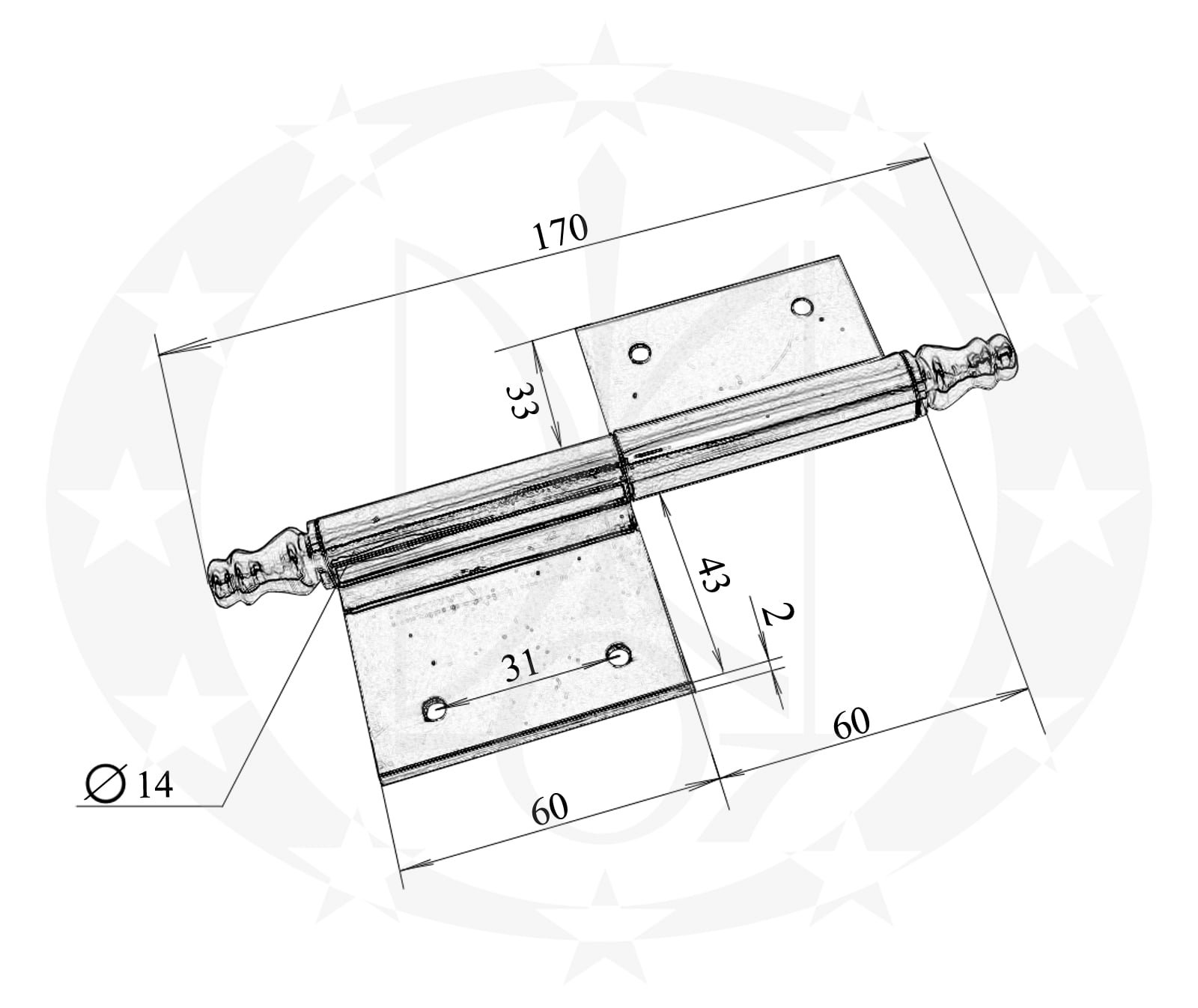 Завіс врізний з кулькою латунь 120 (12mk) – вкручуваний завіс польського виробництва, оздоблений точеними декоративними елементами.