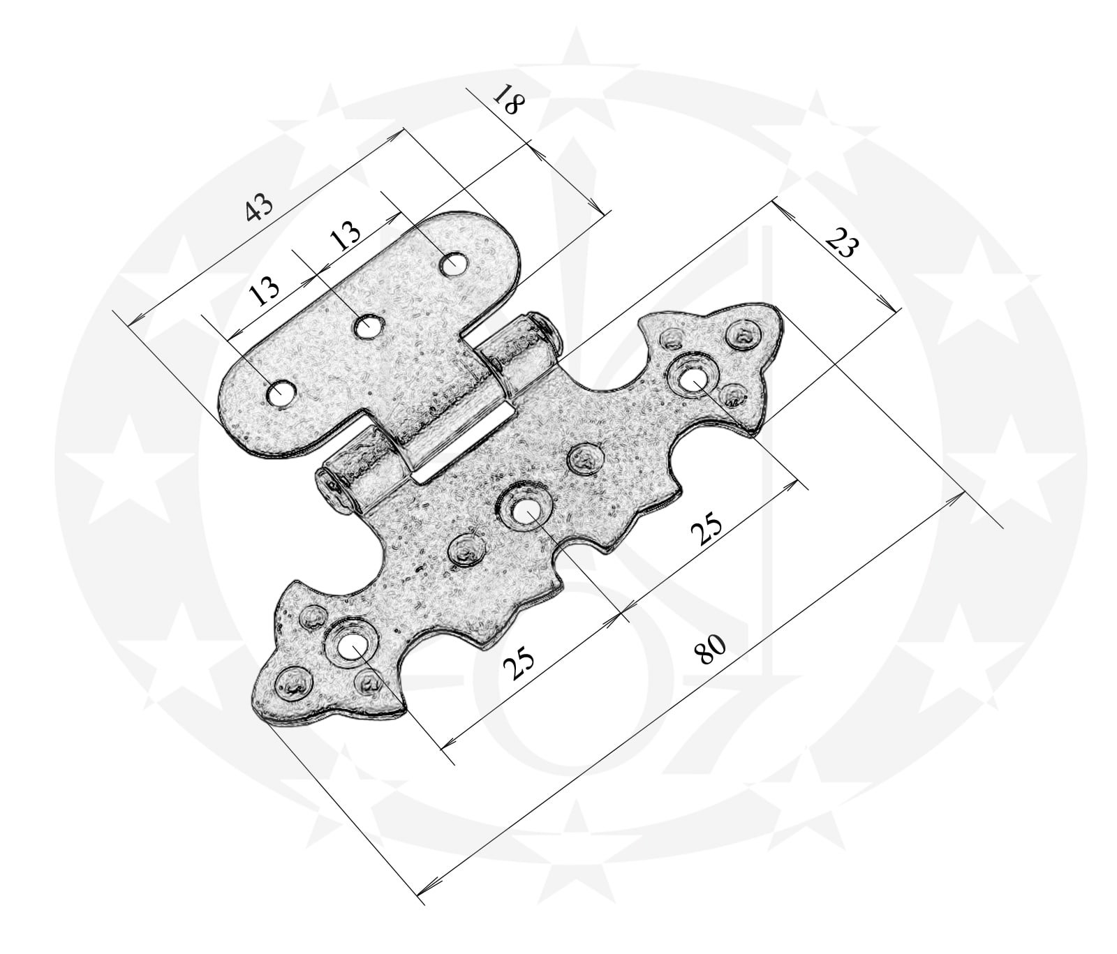 Завіс меблевий Р патина – меблевий, накладний завіс польського виробника SAZ оздоблений декоративними елементами. Завіс використовується в меблевих виробах та сувенірних виробах, декоративних дерев’яних конструкціях.