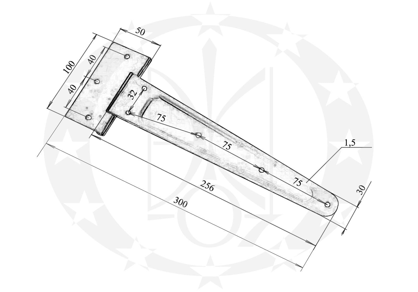 Завіс Стріла чорна 300 мм – сталевий, незнімний завіс вітчизняного виробництва.
