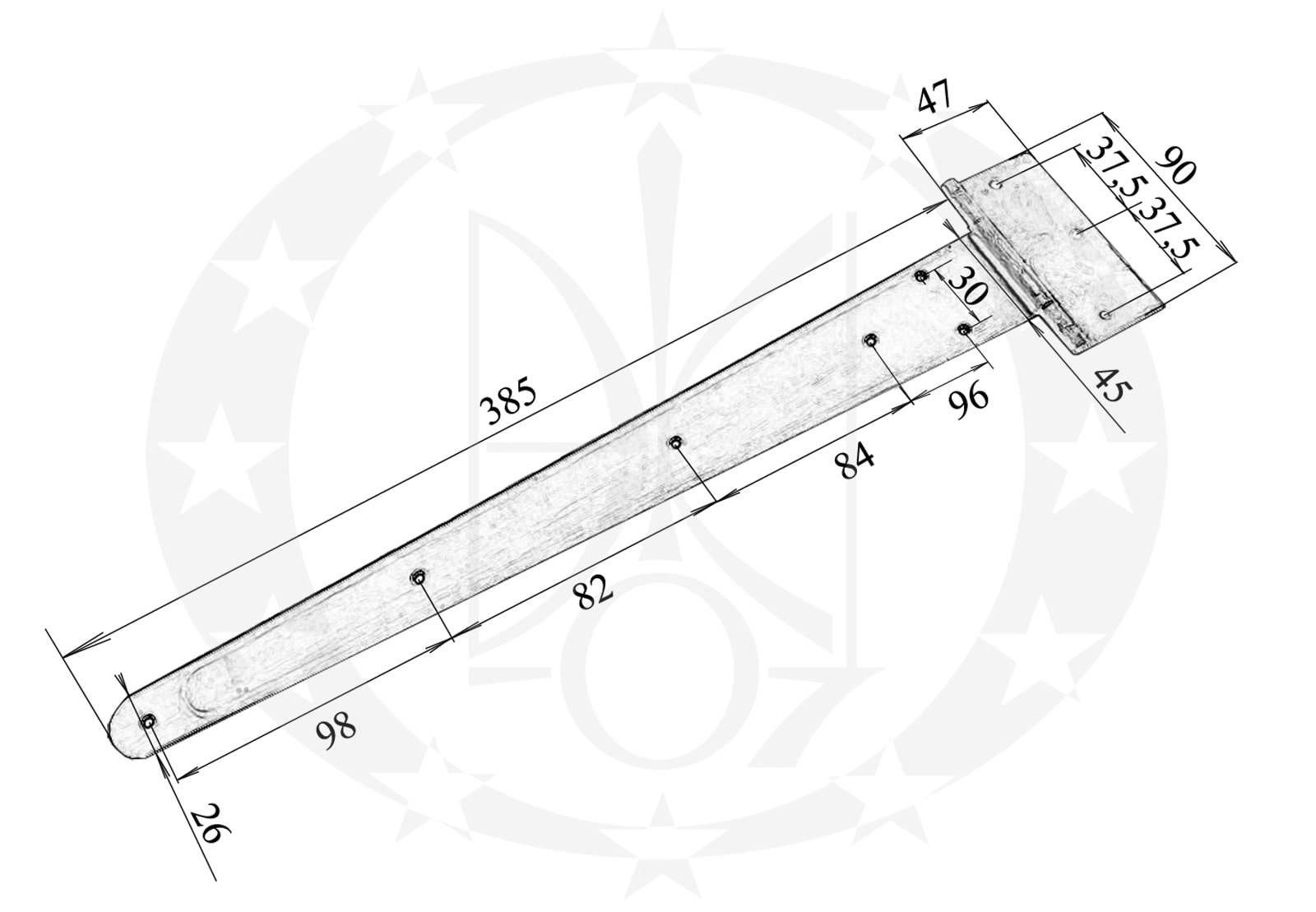 Завіс Стріла чорна 450 мм – сталевий, незнімний завіс вітчизняного виробництва.