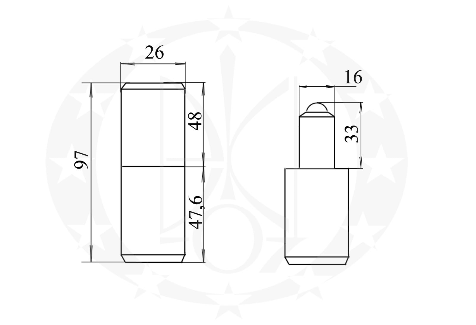 Завіс точений Ф26 чорний зміщений – сталевий, точений, знімний, приварний завіс польського виробника RYMET.