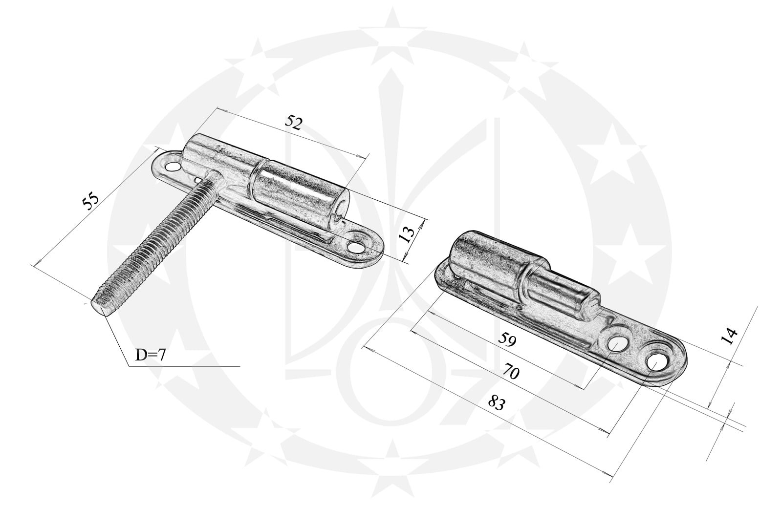Завіс вкручувано-накладний 13 – сталевий, вкручуваний, знімний завіс польського виробництва.