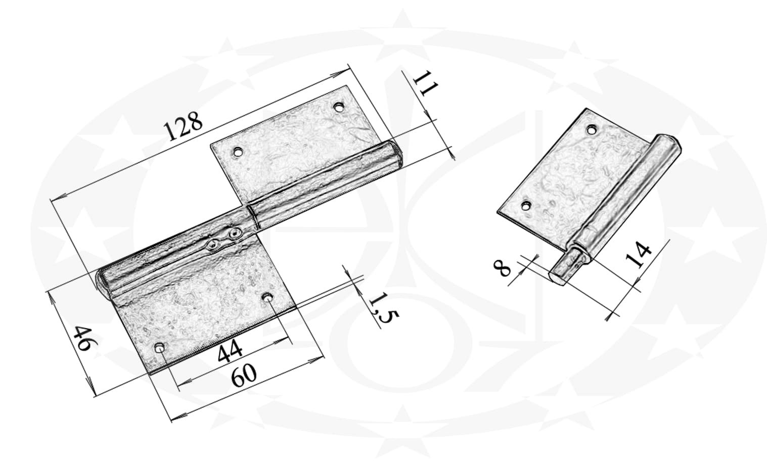 Завіс врізний 120 цинкований – накладний, металевий завіс польського виробництва.